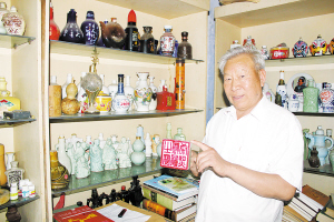 本报讯 八仙过海、西天取经、军事科技、水浒人物、三国名将……6月1日,记者在郸城县退休干部吴金德家采访时,他那不足10平方米的“陋室”里摆满了各式各样的酒瓶,令人称奇。据悉,吴金德20年前退休后,一直痴迷收藏各式各样的酒瓶,虽然他酒量不好,但有时为了一只稀奇的酒瓶,他甚至花半月工资买回来,先喝光酒再珍藏酒瓶。如今,吴金德收藏的酒瓶达1100个,而且不重样。
