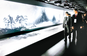 6月1日,观众在参观通过多媒体技术“合璧”后的《富春山居图》。当日,“山水合璧——黄公望与《富春山居图》特展”开幕式在台北故宫博物院举行。分藏海峡两岸的《富春山居图》系元代著名画家黄公望所作,清初被焚为两断,分别称为《剩山图》和《无用师卷》。这件书画珍品360年后首次“合璧”展出成为两岸关注热点。 新华社发