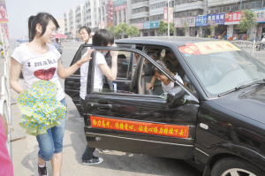 昨天中午,高考第一门考试即将结束,在周口一高考点外,记者看到很多私家车在等待接考生。记者观察了一下,考点外有3辆出租车、两辆贴有爱心送考车标志的私家车和两家企业提供的6辆爱心送考车。