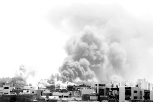 卡扎菲还在讲话中强调说:“无论是死是活,我都将待在的黎波里。”同时,卡扎菲还呼吁人们前来他的住处阿齐齐亚兵营表示对他的支持。利比亚官方电视台的画面显示,首都的黎波里浓烟滚滚,火光冲天,据悉,当天利比亚领导人卡扎菲的住处遭到至少4次空袭。