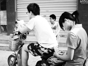 6月8日8时许,趁考试还没开始,项城市第二高级中学校门口,两名考生一前一后端坐在一辆电动车上认真地复习备考。