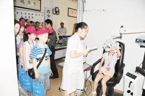 6月4日,在第十六个“全国爱眼日”来临之际,周口晚报社组织小记者走进市区一家视力矫正中心,接受视力检查,摆脱近视的困扰,帮助小记者们安心学习。一些学生由于没有一副合适的眼镜而影响了正常学习,并导致近视程度加重。