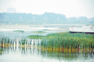 昨天,在东新区周口公园里,一市民被周围的美景所吸引,完全忘记了天气的炎热。据了解,经过建设,如今周口公园已是绿树成荫,人工湖更是碧波荡漾、芦苇摇曳、野鸭嬉戏。晚报记者 朱海龙 摄