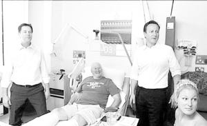 对于这场突然的语言“袭击”,卡梅伦和克莱格感觉非常尴尬和震惊。显得有些迷惑不解的卡梅伦抬手示意电视台工作人员离开病房,并语无伦次地说:“我们为什么不……嗯,我们为什么,你们先消失一会儿……我同意出去……”。