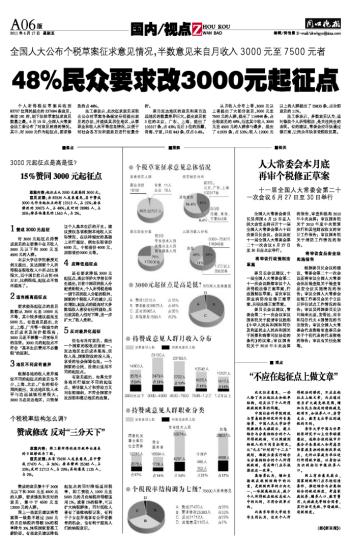 48%民众要求改3000元起征点