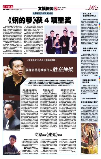谭凯为导演打圆场说,《建党伟业》不是单纯的献礼片,而是尊重历史纯粹的电影,导演在选演员时只看像不像,而不会在乎明星的知名度。于是记者表示好奇的是韩庚跟邓小平同志实在太不像。话音一落,台上的演员们愣了两秒。随后聂远和潘粤明开始一唱一和地解围说:“他是神似!神似!不一定要形似!其实那时候邓小平年纪还很小,很清秀的。”(贺雅佳)