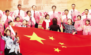6月18日,市民们在演唱《红梅赞》。当日,上海市闵行区浦江镇举行“纪念中国共产党成立90周年万人唱红歌”大型主题歌会,万余名社区居民高唱《爱我中华》《祖国,你好》等35首红色经典歌曲,用歌声表达对祖国的热爱和对党90华诞的祝福。新华社记者 凡军摄
