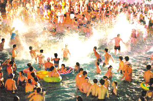 作为深圳欢乐谷九大主题区之一的玛雅水公园,是深圳人最熟悉的戏水天堂,今年它以全新面貌闪亮登场,引进多个巅峰娱水项目——飞驰滑翔的“大滑板”、合家欢的“家庭泛筏”、水上跳楼机“惊险水环”、水上竞技项目“水毯”、家庭戏水天堂“水寨”等。公园里的加勒比海滩和318米长的潮汐河,是戏水狂欢的最佳处所,高空滑道以及全长达400多米的蟒蛇滑道同样拥有不少粉丝。作为一座以玛雅文化为主题的水上乐园,公园里各色奇异的玛雅建筑、无处不在的玛雅象形文字,营造出远古玛雅文明的神秘氛围。无论白天还是黑夜,玛雅水公园都是嬉水狂欢的胜地。加勒比海滩的造浪池引进了先进的真空造浪技术,营造出逼真的环境设置和冲浪效果,让人犹如置身大海搏击海浪,而漫步在金色沙滩,可以享受浪花轻抚的无限温馨浪漫风情。除了玛雅水公园,欢乐谷内还有另外8个主题乐园,其中和水有关的还有“阳光海岸”。