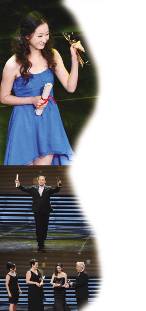 算起来,本届金爵是华语片获奖最多的一次了,《郎在对门唱山歌》和《HELLO,树先生》连得五奖。《郎在对门唱山歌》中的女主角吕星辰18日晚刚从周桐淦的手中获颁电影频道传媒大奖的最佳新人女演员奖,意外之喜接踵而来,19日晚她被宣布为本届金爵的影后!吕星辰目前还是北京舞蹈学院音乐剧系的学生,第一次出演电影,就获得如此殊荣,这个女孩上台后开心得不知所措。不过,应该说,她在《郎在对门唱山歌》中的表现的确很出色,加上影片清新隽永和略带忧伤的风格,以及它的民俗韵味,据说在电影节上,这部片是“中年男人的心头之好”。吕星辰现场献唱了片中的民歌“郎在对门唱山歌”。片中的陕西紫阳民歌也很动人,影片因此还获得了最佳音乐奖。第六代导演章明一直坚持走艺术片路线,浮沉多年不为媒体关注,这次《郎在对门唱山歌》还为他争取到最佳编剧奖项。