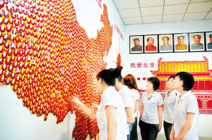 建党90周年纪念日到来之际,周口同和堂医药有限公司董事长刘钦文的红色收藏馆再次迎来了如潮观众(如图)。这个建于两年前、占地300余平方米的收藏馆以宣传毛泽东思想为主题,馆内毛主席雕像、像章、照片、书法、文献、刺绣等藏品众多,分类陈列,让每位前往参观者都能受到一次心灵洗礼。晚报记者 李伟 摄
