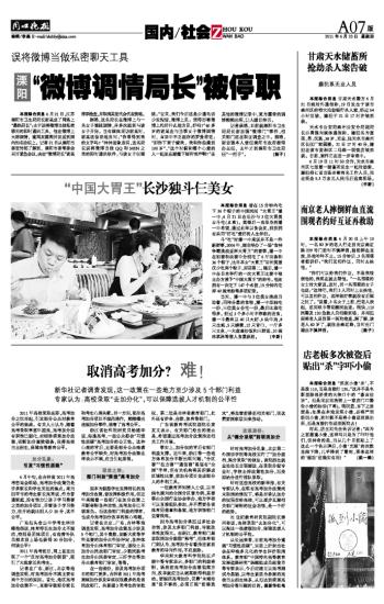 本报综合消息 曾在15分钟内吃下36个粽子的中国民间“大胃王”潘一中,6月21日在长沙与3位大胃美女斗吃(左图)。离婚后一直单身的潘一中希望,通过此举以食会友,找到拥有共同“好吃”爱好的人生伴侣。