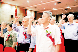 当日,为迎接建党90周年,上海应用技术学院的老干部和退休党员济济一堂,重温入党誓词,回顾党的伟大历程。 新华社发