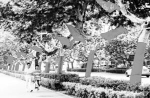 本报综合消息 金色的衣领,大红的绸缎,6月20日,合肥市芜湖路上的法桐统一“穿”上了“红旗袍”(下图),显得格外亮眼喜庆。