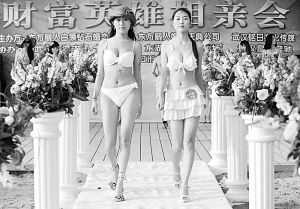 6月25日下午,武汉东湖沙滩浴场一场财富英雄相亲会激情上演。经过前一段严酷角逐,这次出席的60名佳丽个个身着火热风情的比基尼,令现场富豪们心动不已。中新 摄