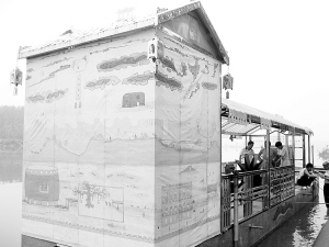 老康今年58岁,是东新区文昌办事处康店社区居民。昨天,记者见到他时,他正和几个帮忙的群众忙着装配观光船。“目前已进入最后组装阶段。”老康说,他打造这艘“游览船”耗时1年多时间,花费3万元,费了不少工夫,船上的装饰品都是他一手打造的,连船上的画也都是他一笔一笔画出来的。 老康说,为了尽量逼真地复原古代船只的原型,他不仅查阅了资料书籍,而且参照了许多影视作品。 提起造船的初衷,老康想法很简单,就是希望带着亲戚朋友游览一下沙颍河畔两岸的风光,不过,如果市民愿意乘坐,他也不会收费。