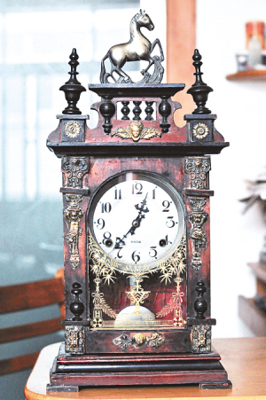 民国时期,德国钟占据中国钟表市场半壁江山。当时德国钟甚至不打品牌,直接在机芯铜夹板上用钢印砸上德国造三个汉字。德国钟质量好、制作精美,耐久性较强,受到社会上层的广泛欢迎。德国钟钟套精美,多用普鲁士风格的西洋人面相、战马、神鹰进行装饰,风格奢华。