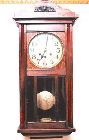 民国时期国内战事不断、经济不稳,德国钟表在当时是一种高端奢侈品。进入上世纪30年代,日本发动“九一八事变”,同时将东洋钟表倾销中国。一些国内钟表企业家为了鼓舞民众爱国热忱,经常在座挂钟背板附有一段激情洋溢的爱国文字。