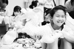 7月13日,小学生在“换物节”上选择自己满意的交换物品。
