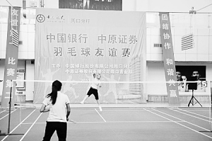 昨日下午,中国银行周口分行与中原证券周口分公司在市体育馆举行了一次羽毛球联谊赛,旨在让双方员工加强联系、增进友谊。