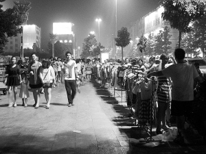 天热了,很多市民纷纷在晚饭后走出家门,或锻炼或纳凉或玩耍,练摊人瞄准的就是这一群体。周口市区几个适合市民玩耍乘凉的地方,诸如中州大道大桥、五一劳动广场,练摊人就云集在附近。
