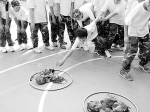 一天,我们在酷热的太阳下进行队列训练。“立正,向右看齐,向前看,跪下……”我们随着苍狼那严厉的声音认真地做着每个动作。忽然,一位同学在没打报告的情况下擦了一下脸上的汗,不巧被苍狼看到了,结果让集体罚站军姿一小时。烈日当空,在太阳下站军姿,大家的衣服很快都被汗水湿透了,真是苦不堪言!