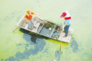 7月18日,淮阳组织县直各单位的党、团员等青年志愿者2000余人走上街头捡拾垃圾,清扫卫生,并帮助环卫工打捞蔡河河面上漂浮的垃圾,开展青年志愿者集中宣传活动,为创建国家级文明城市尽一份力。 晚报记者 杜欣 摄