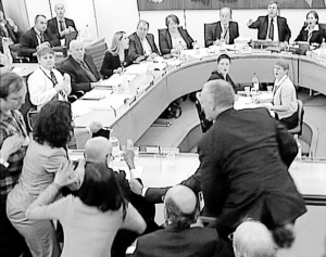 据英国媒体7月19日报道,传媒大亨默多克和儿子詹姆斯、新闻国际前行政总裁布鲁克斯当天出席英国议会听证会,就窃听和贿赂丑闻接受质询,此次质询是默多克在英国40年的生意史中首次面对议员提问。默多克表示:“这是我一生最卑微的一天了。”