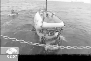 21日凌晨2时44分,像一条大白鲨般的“蛟龙”号起吊入海。2时49分,主吊缆将21吨多重的载人潜水器吊起。慢慢地,潜水器被放入海水中。