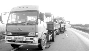 7月21日在浙江省平阳县境内的G15沈海高速上拍摄的追尾事故现场(上图)。当日4时49分许,在浙江省平阳县境内的G15沈海高速(原甬台温高速)往福建方向1783公里+200米处,一辆重型厢式货车追尾撞上一辆重型半挂牵引车。事故造成9人死亡,4人受伤。目前,事故原因正在进一步调查中。新华社发