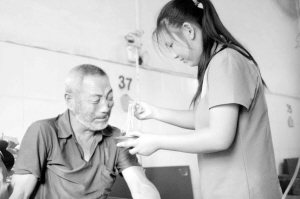 在病房里,前来看望钱良齐的邻居钱良金说,7月12日17时许,钱良齐像往常一样出来串门,跟邻居说话时突然倒地,右半身失去知觉,并且嘴也歪了,邻居们赶紧把他送进了医院。