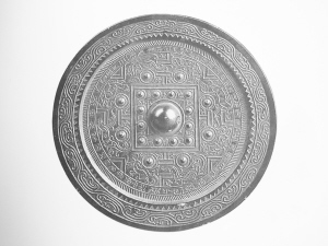 铜镜背面的“L”“T”“V”符号是考古界所说的博局纹,也称规矩纹,是汉代铜镜中常见的一种纹饰,过去中国和日本学者称之谓“规矩纹”,欧美学者则称之谓“TLV纹”。