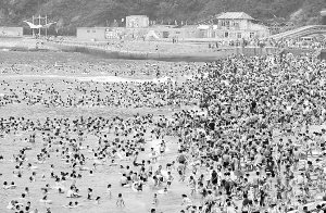 7月30日,游人在江苏连云港连岛大沙湾游乐园消暑。据介绍,当日连云港连岛海滨旅游度假区共接待游客约5万人次,创今年入夏以来日接待游客数量最高纪录。