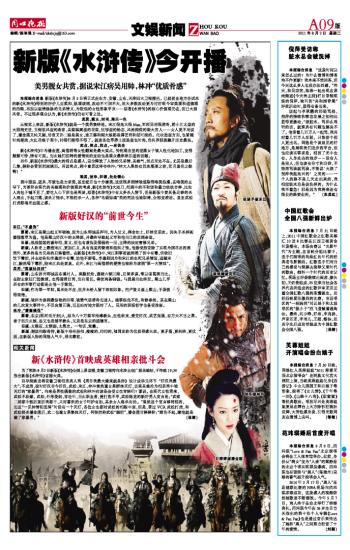 为了预热8月2日新版《水浒传》全国上星首播,安徽卫视特向水浒主创广派英雄帖,于昨晚19:30推出新版《水浒传》首播大典。