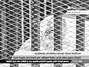 埃及国家电视台转播镜头捕捉到,穆巴拉克一会儿把双手垫在脑后,一会儿用胳膊遮住额头,与两个儿子贾迈勒和阿拉交谈。贾迈勒和阿拉显得较为镇静,他们轮流挡在电视摄像机镜头前,以期阻止拍摄病中的父亲。