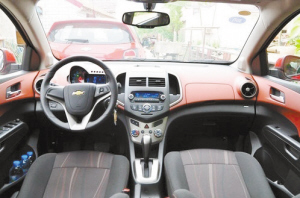 进入到车内,其内饰的设计同样让人眼前一亮。内饰整体设计感十足,机车的设计元素在内饰中同样得以体现。爱唯欧方向盘直接采用了老大哥科鲁兹上的设计,高配车型采用三幅运动型设计,握圈采用真皮包裹并且右侧还集成了音响控制按钮。一体化的中控台包括排挡杆、空调控制按键以及带有AUX接口的音响系统。双色搭配的内饰、涡轮式的空调出风口、空调两端的竖状储物空间,还有专为停车卡设计了插卡槽以及用来放置硬币的储物格,可谓非常贴心。机车式的仪表设计,具有强烈的时代感。驾驶这样一款灵活的小车必能引来不低的回头率,充分满足新新人类对于自由、个性的追求。