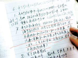 而杨湖南向记者提供的他在今年中招考试填报志愿会议上的讲稿记录(如图3)则显示,整个志愿填报的过程全部在学校完成,他们不参与。讲稿显示,学生“填报志愿后,班主任和(所在)学校要逐一审核,填写有无错误、内容是否完整符合要求,然后再按输机(计算机)说明统一输入志愿光盘,并再次审核输入机志愿与考生原志愿表(指纸质志愿表)是否一致”。最后,杨湖南还强调,“关系到(学生的)录取,马虎不得”。