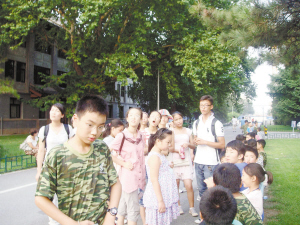 8月8日~13日,本报小记者参加“走进北京”励志夏令营活动,于13日晚结束了为期6天的全部行程返回周口。在北京期间,小记者先后游览了故宫、军事博物馆、万里长城、中国科技馆、鸟巢、动物园、海底世界、天坛等景点。图为小记者在北京大学参观,并与高校学子对话。张劲松/图