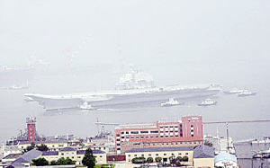 经过4天的试航,中国首艘航母于昨天上午凯旋,在拖船的牵引下回到大连造船厂的停泊处。之后,将继续在船厂进行改装和测试工作。