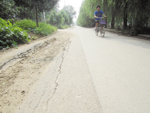 近日,有读者反映周口市区交通大道西段富民路至枫诚学校门前的便道路面凹陷,为附近居民出行造成困扰。昨天,记者从交通大道西段富民路口一路向西,看到便道南侧700多米的路面上均有不同程度的凹陷,路人途经此处,只能靠路北行驶。据附近居民介绍,这段路面在去年的城市管网改造中曾被挖开,工程结束后就被填平了,但不久之后,路面就出现了凹陷,附近居民出行时只好从便道另一侧通过。希望相关部门重视此事,早日采取相应措施。晚报记者 宋风 摄