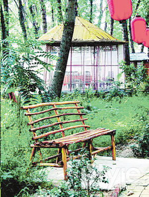 这里有许多美食不可错过,尤其是那道美名远扬的“炒鸡”,亲眼所见,从杀到熟仅15分钟,鸡肉入味程度令人惊艳,独特的酱香、微微的麻辣,充分刺激着味蕾,从此想忽略其他一切鸡的烹制法。快乐源农庄的餐饮非常火爆,最好提前一天预订,大多是回头客,全靠口口相传。农庄内还有采摘园300多亩,目前可采摘的水果有桃和李子,直接入园采摘,5元1斤。农庄的老板可谓相当低碳,餐厅大堂的装修无处不环保,踢脚线不是用废酒瓶就是用树枝镶嵌,所有椅子都是用树木自己敲打而成。卡座区临着落地窗,可以WIFI上网冲浪。长长的书架上,各种图书供你挑选阅读,轻松消磨林中时光。