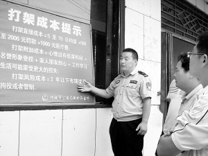 “打架的直接成本=5日至15日拘留+500元至2000元罚款+医药费……”8月18日,项城市公安局新桥派出所在该镇街头设置的一块“打架成本提示”展板,引来附近不少居民驻足观看。