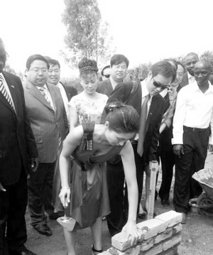 卢星宇在微博上自曝为“中非希望工程”奠基亲手砌墙。