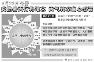 本周二是二十四节气中的第十四个节气——处暑。气象专家表示,处暑表示炎热暑天即将结束,但“秋老虎”的余威仍不可小视。