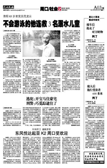 不会游泳的他连救3名溺水儿童