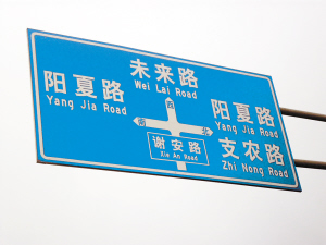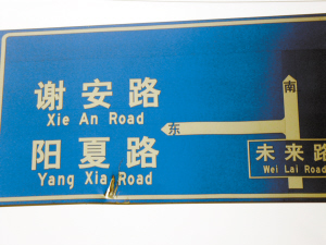 当日,记者和赵先生在太康县城未来路上的一个交通指示牌看到,指示牌上显示为“阳夏(yang xia)路”(如图一)。随后,在谢安路上的一个交通指示牌上,记者看到同一条道路显示路名为“阳夏(yang jia)路”(如图二)。“显然是未来路上的交通指示牌的拼音标错了!”赵先生介绍,这条路因太康县古称阳夏(yang jia)而得名,只是这个错标牌往往给过往的司机带来不解,希望赶快把标牌换换!