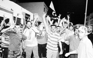利比亚反对派在首都的黎波里市郊塔朱拉庆祝。
