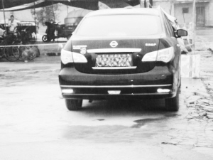 本报讯 由于太康街头出现个别轿车车牌穿“迷彩服”(如图)这一现象,昨日,太康县交警大队城市中队出动10名民警和2辆警车,在该县多处主干道严查机动车故意涂改车牌、遮挡车牌等交通违法行为。据悉,对于给车牌穿“迷彩服”的车主,第一次查处,该县交警给予批评教育,第二次查处,则给予驾驶证扣6分、罚款200元的处理。目前,已有20多名轿车车主受到处罚。