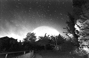 网友陈旭说,当晚天空中出现了奇怪的光圈。为了证实自己的说法,他还在微博上发布了一张照片(见上图)。