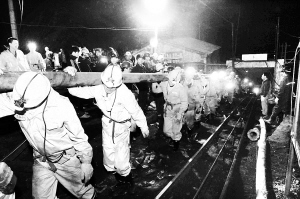8月23日,救援人员在事故现场搬运排水管道。从黑龙江省安全生产监督管理部门获悉,8月23日12时左右,黑龙江省七台河市勃利县恒太煤矿发生透水事故。经初步核实,有26名矿工被困井下。目前,事故救援工作正在进行中。新华社发