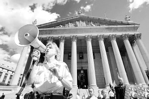纽约联邦地区检察官万斯当时正召开新闻发布会,就取消针对国际货币基金组织前总裁卡恩的性侵犯指控一事说明情况。现场媒体记者和工作人员连忙跑到室外。